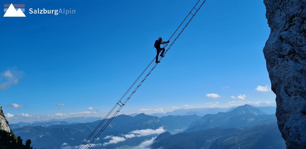 THE highlight of the via ferratas! - The famous ladder to heaven on the Donnerkogel! The 40-meter giant ladder above the abyss is undoubtedly one of the highlights of the entire region and is now world-famous thanks to countless posts. However, people often forget that the entire via ferrata is a great and unforgettable experience! With our state-certified mountain guides, the tour really becomes a carefree pleasure!