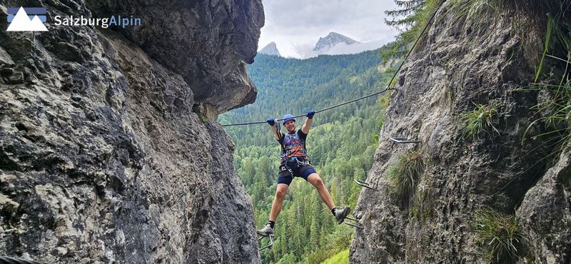 jeden Donnerstag ab Anfang Mai! - Kurzer Zustieg - tolles Erlebnis - die "Direttissima" über dem Königsee! Leichter Klettersteig (Schwierigkeit bis C - auch für Anfänger geeignet) mit traumhaften Rundumblick im Angesicht des Watzmann!