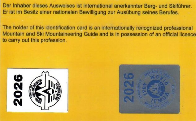 Achten Sie unbedingt vor Beginn einer Tour darauf, ob Ihr Guide/Führer über eine aktuell gültige Berechtigung verfügt (Ausweis mit Jahresmarke) - bei Haftungsfragen kann es mit nicht autorisierten Personen zu gravierenden Problemen mit u.U. weitreichenden Folgen kommen (kein Versicherungsschutz)!