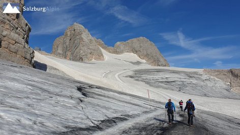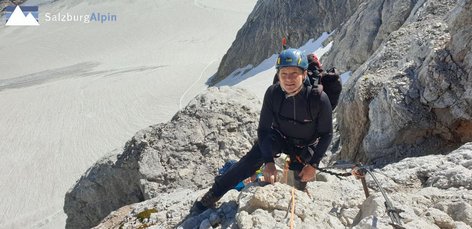 Treffpunkt am Parkplatz der Dachstein Südwand-Seilbahn. Nach einer Ausrüstungskontrolle (bei Bedarf Ausgabe der kostenlosen Leihausrüstung) Auffahrt mit der Seilbahn zum Hunerkogel, 2.687m. Anlegen der Kletterausrüstung und Wanderung über den Hallstätter Gletscher vorbei an der Seethalerhütte zum Einstieg des Schulteranstieges, der uns über den NO-Grat zum Gipfel führt. Im unteren Teil Klettersteigpassagen bis Schwierigkeitsgrat B, in der zweiten Hälfte nur mehr teilweise als Klettersteig versichert (u.U. Klettern mit Steigeisen).